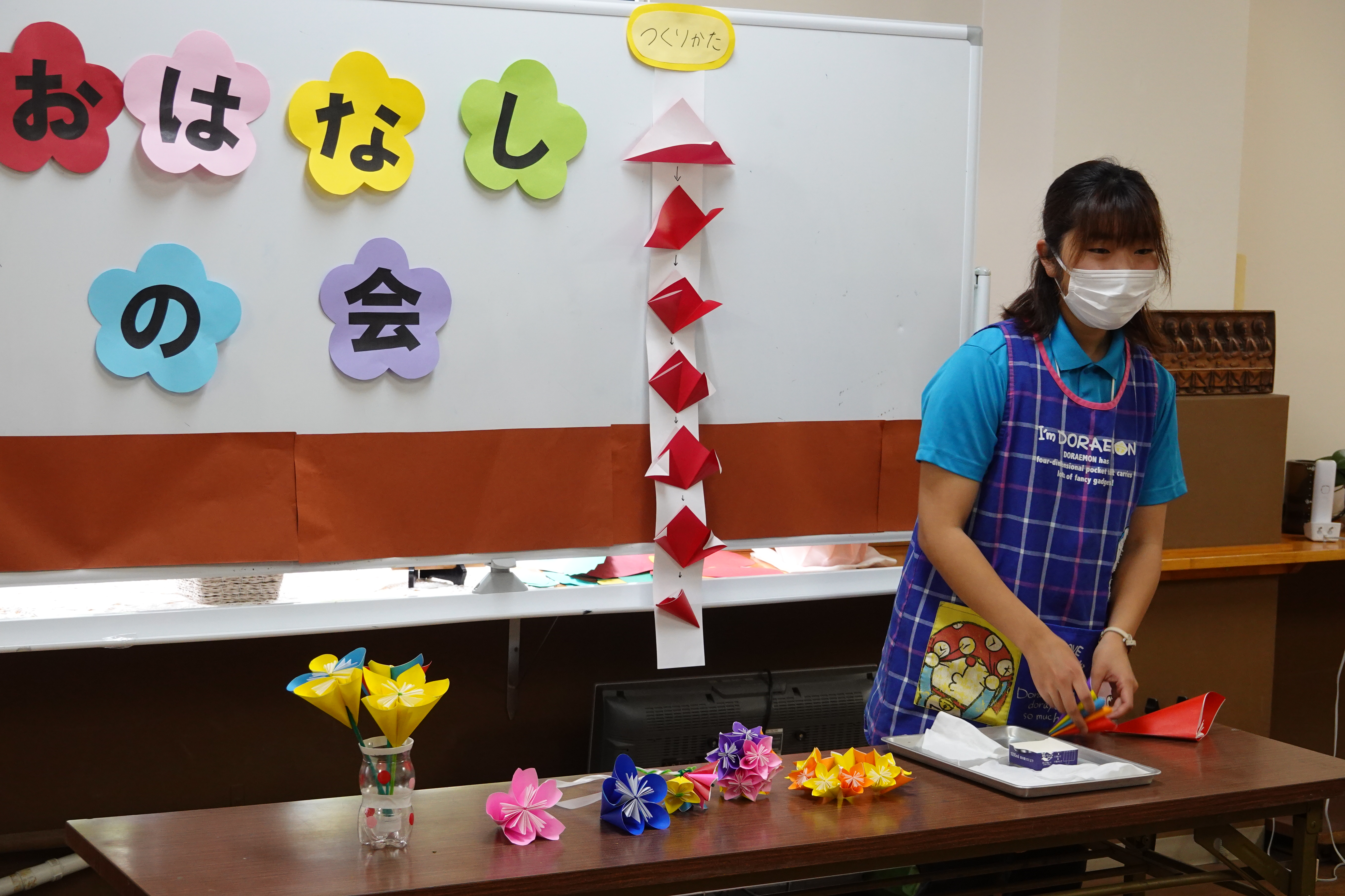 折り紙で作れる花の紹介をし、保護者の方と一緒に作りました♪